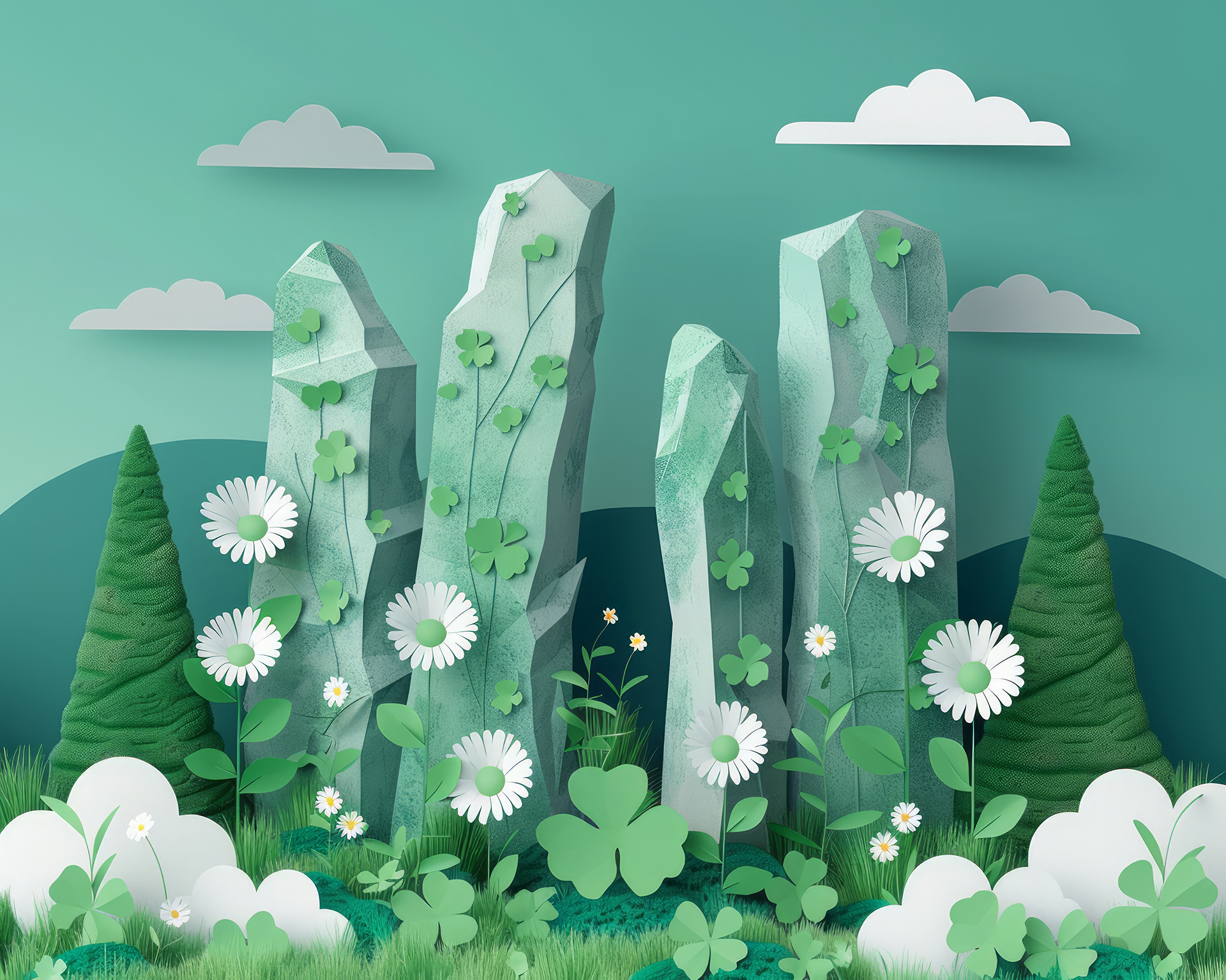Origami tulips made of multi-colored paper on a light gray background. AI Generative