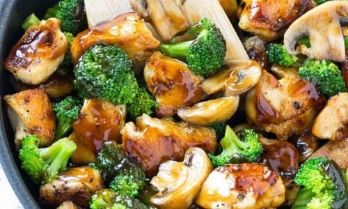 Pour the oyster sauce mixture over the chicken and vegetables; cook for 30 seconds. Add the cornstarch and bring to a boil; cook for 1 more minute or until sauce has just started to thicken.